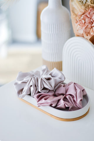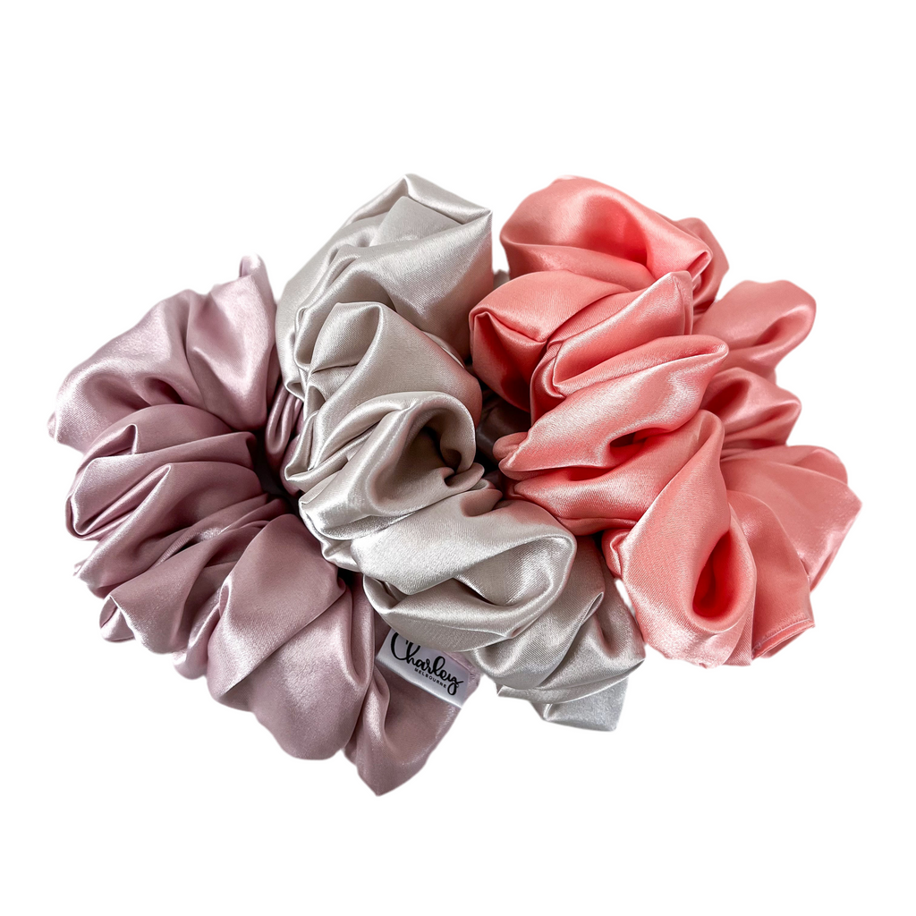 Our most-loved scrunchies, now in curated bundles designed for every mood, outfit, and occasion. Each set includes three handmade luxe satin scrunchies, chosen for their timeless style and versatility.