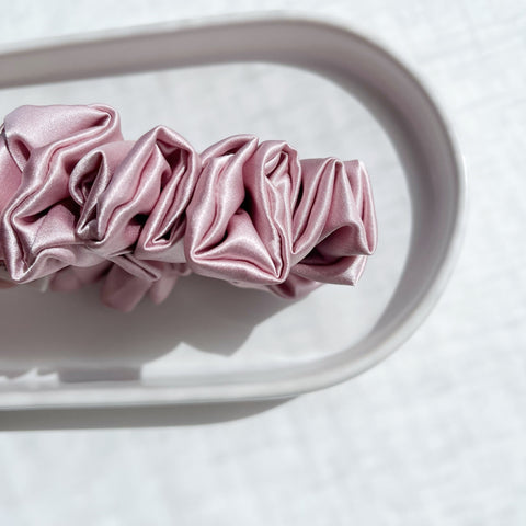 1. **The Mini:** An extra-small scrunchie, perfect for kids, toddlers, or styling plaits, half-up hair, and ponytails for those with fine hair. Ideal for both trendy looks and promoting hair health.